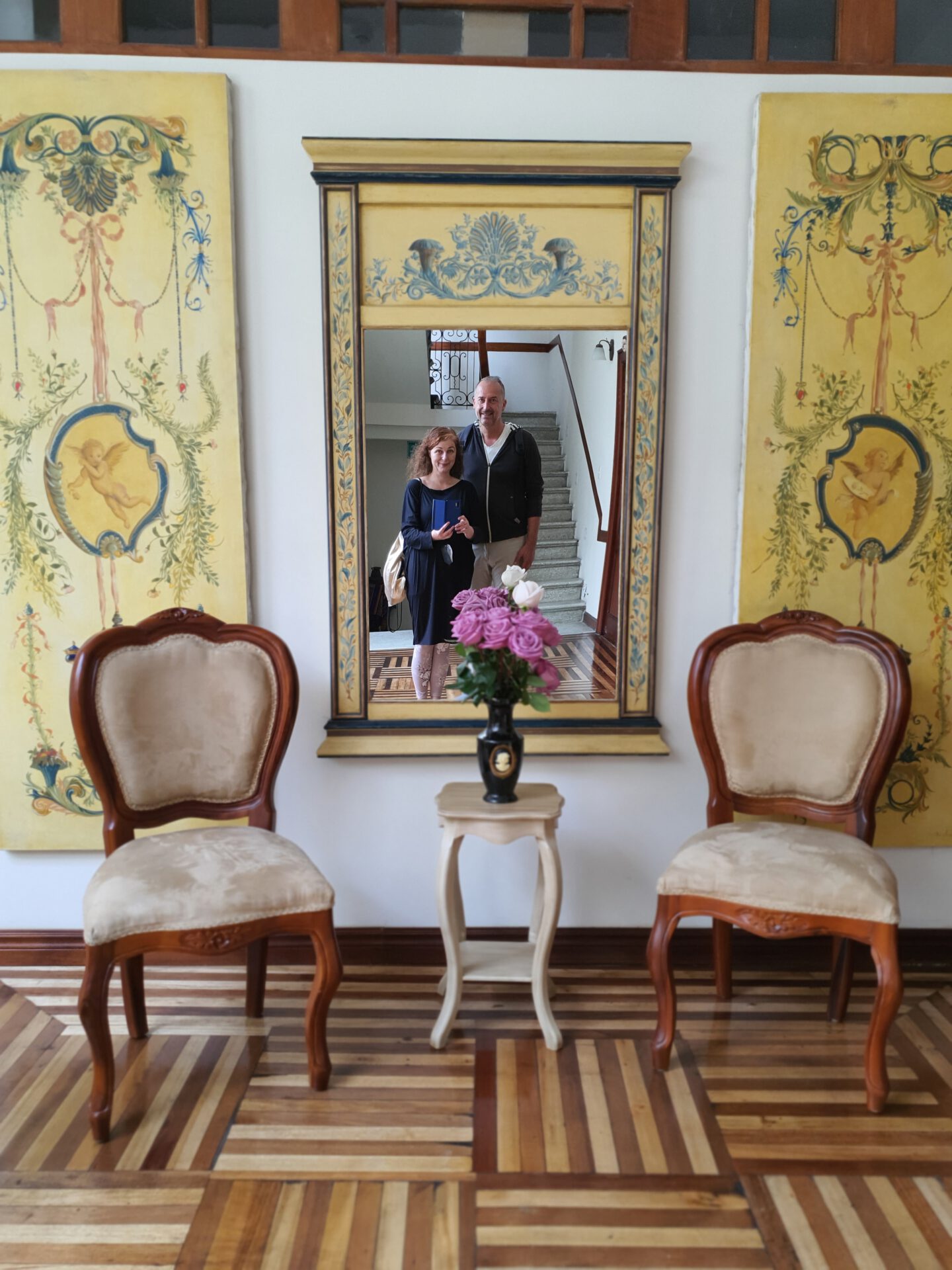 Das Hotel Casona 1914 ist eine renovierte Villa aus dem Jahre 1914 (wie der Name schon sagt) und vielleicht eines der schönsten Hotels, in dem ich je gewohnt habe. Zur Begrüßung wird man mit einem warmen, feuchten Handtuch und einem Blütenteegetränk begrüßt. Der Concierge liest einem jeden Wunsch von den Augen ab. Es ist klein (6 Zimmer, 2 Suiten) und meist ausgebucht. Wir hatten Glück und kamen zu einer Zeit nach Quito, als dort nicht viel los war. Wir wurden von einem Fahrer am Flughafen abgeholt und vor Ort mit der (sehr willkommenen) Nachricht überrascht, dass wir in einer der Suiten unterkommen können. Eine freistehende Badewanne aus dem Jahre 1914 – liebevoll restauriert und wunderschön, aber mit modernen Armaturen – inklusive. Hammer.