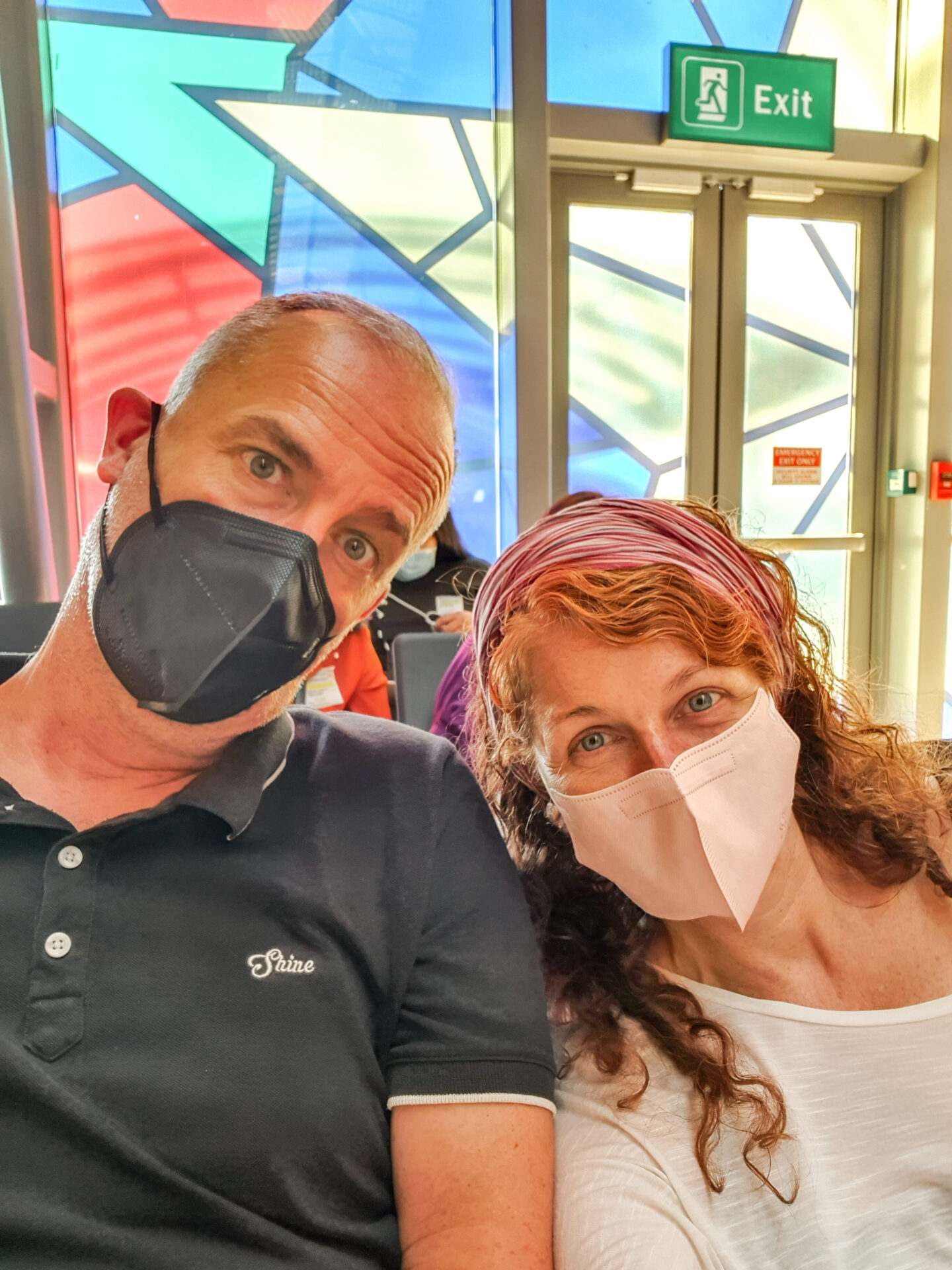 Man bietet uns einen Flug am nächsten Tag und eine Übernachtung mit Abendessen in einem Hotel in Cebu an. Wir stimmen zu, denn eine andere Wahl haben wir ja nicht. Wir werden durch die geheimen Flure des Flughafens geschleust und dürfen uns an der Schlange vorbei drücken. Am business class Schalter bekommen wir dann unsere neuen (Premium economy) Tickets ausgestellt. Dann müssen wir wieder warten. Wir sagen dem Hotel auf Boracay bescheid, dass wir erst einen Tag später kommen können und sie sind ganz entspannt. Stephan ist nicht entspannt.